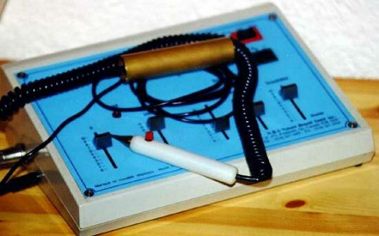 2) Contrôle des teneurs énergétiques des Méridiens avec l'appareil. Chaque Méridien possédant à son extrémité le point de départ ou de terminaison, que l'on nomme " Point Ting ". Il permet également de tester les points des Merveilleux Vaisseaux, déterminant ainsi les carences majeures du métabolisme d'un patient. Voici l'appareil ENERGY 3 :