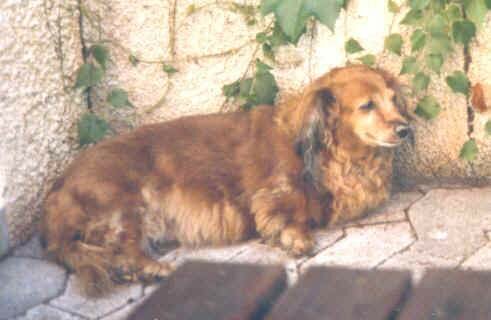 L'adorable Teckel que Bibiche avait recueillie au chenil, et que ses parents Marie-Rose et Robert, ont élevée. Elle nous a quittés début Mars 1990.